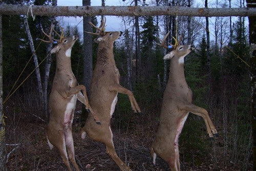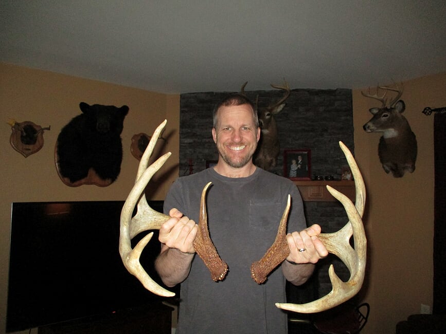 Lee Schanz with his 10 best bucks. All of these bucks were killed in the Big Woods of Maine.